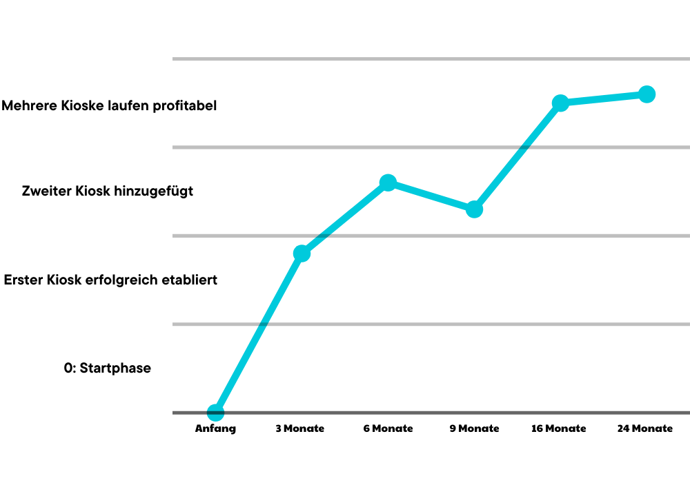 Mit jedem weiteren Kiosk steigern Sie Ihre Einnahmen automatisch, während die Automaten rund um die Uhr arbeiten. In nur zwei Jahren könnten Sie ein florierendes Netzwerk von Kiosken betreiben, das für Sie Geld verdient – ganz ohne ständige Betreuung. Das perfekte Modell für passives Einkommen, während Sie Ihre Zeit für andere Projekte nutzen können.